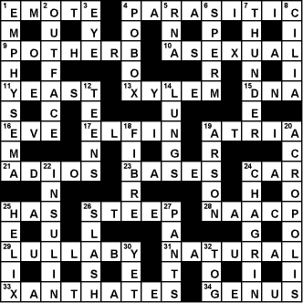 A biology crossword puzzle. You gotta know your stuff! Good luck.