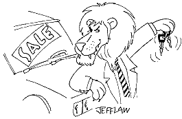 Thirty minutes later, the supervisor came down to finalize the deal. He shook our hands, confessing the sacrifices he had made to "put us in this car." He wondered aloud of his kids would eat this month. I felt like a sweaty pig. I had just prostituted my principles to a revolting game of greed, materialism, and lifelong payments. But if you want a new car, there are no two ways about it. Even now as we drive around town, I sometimes see Steve in the rearview mirror. He is sitting in the backseat with a smirk, purring sweetly as he basks in the afterglow of the big sale. And that is a cost you won't find anywhere in the fine print. |