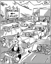 Back at the parking lot, we climbed into our Dodge minivan with Sponge Bob trim and merged onto the 110 "freeway," where our top speed was 16 miles an hour. I turned to thank Lance for all his support, but he had fallen asleep like a little boy after Christmas, making car sounds with his saliva. |