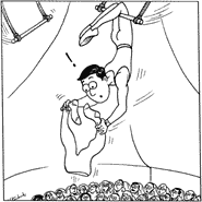 For the finale, Vladimir dressed me in the strongman suit and pushed me back into the ring. I was supposed to keep pace with a Brazilian showgirl, but somehow I got trapped outside the curtain and had to fish my way back through. People laughed at my comic brilliance.