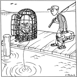 I've never understood the attraction of fishing, trying for hours to catch something that costs a dollar at McDonald's. It's not like we would eat our catches anyway. My wife, having zero stink tolerance, told me to choose my fishing clothes carefully because when I got home she would burn them.