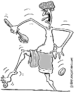 As much as I distrust a man wearing an apron, I asked, "What does that