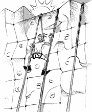 The cliff was two stories high and spattered with footholds. People were
