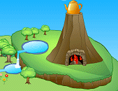 - The fire will enter the volcano and cause the teapot to start boiling.